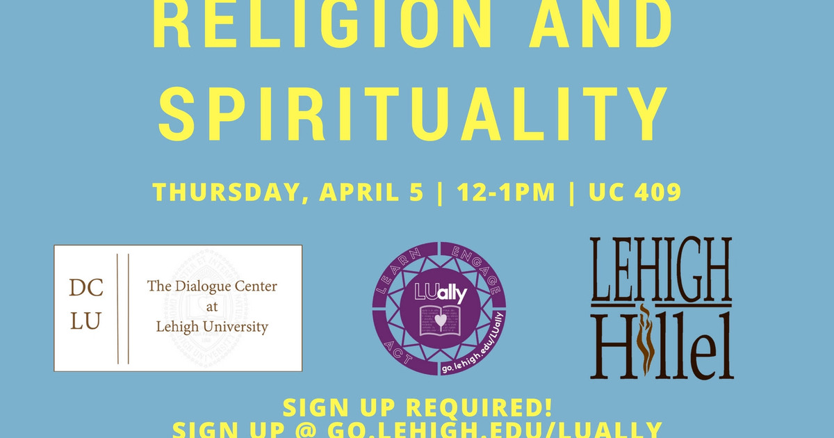The Dialogue Center is proud to sponsor: The Lehigh University Pride Center for Sexual Orientation and Gender Diversity, LUally, - training model, delivering skills-based, educational opportunities for the Lehigh community, "Religion and Spirituality". Sign-up go.lehigh.edu/lually